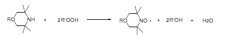 研究表明,胺基与氢过氧化物中的氢结合后分解成氮氧自由基,与活化自由基反应后转化成更稳定的结构。