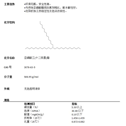 然而随着行业的发展,对环保要求也越来越高,对壬基酚、双酚A、游离酚的限制使用也是越来越严格。而传统上的亚磷酸酯大多数是以亚磷酸三苯酯作为基材进行合成,不可避免有游离酚、双酚A等残留。为适应市场需求,无酚亚磷酸酯抗氧剂脱颖而出。