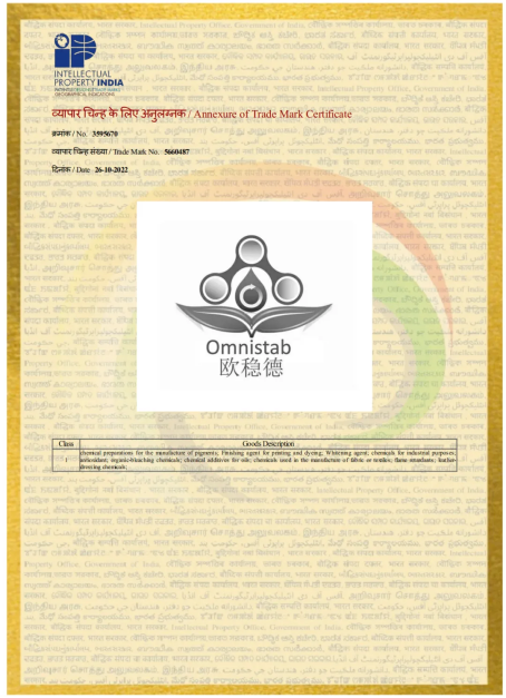 “欧稳德 OMNISTAB”印度注册证书